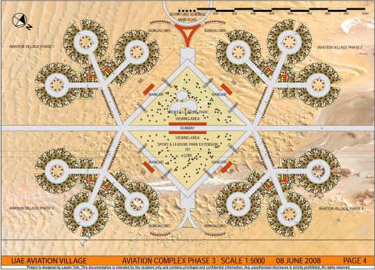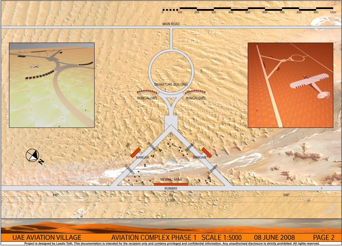 Urban planning for a 50 villas aviation village residential complex: private villas and private hangars just connected to the runways.